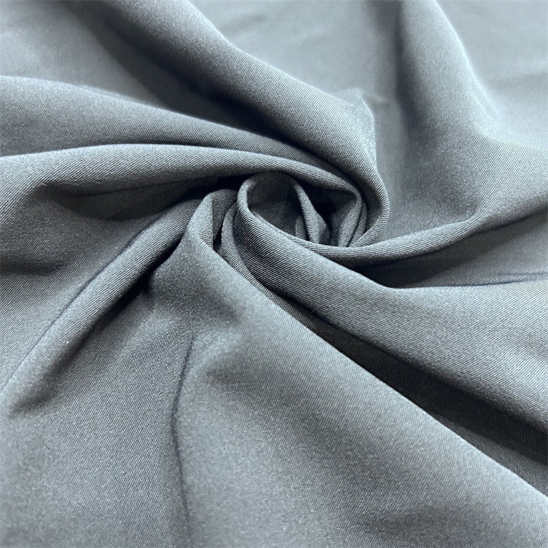 75D matte 2/1 twill elástico de quatro lados, especificação 75D+40D*75D+40D, composição 90% poliéster reciclado 10% spandex, largura efetiva 55 56 ̊, peso 183GSM, superfície do tecido é delicada,Sensação suave e elástica da mão.